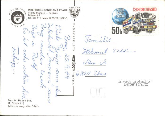 old postcard Praha Prahy Prague Interhotel Panorama Praha postalisch gelaufen Erhaltung siehe scans