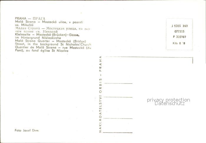 Praha Prahy Prague Kleinseite Mostecko Bruecken postalisch nicht gelaufen Erhaltung siehe scans