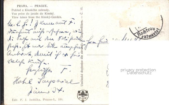 old postcard Praha Prahy Prague Kuenstlerkarte postalisch gelaufen Erhaltung siehe scans