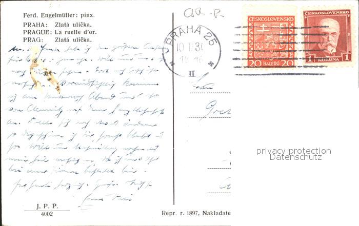 12150590 Praha Prahy Prague La ruelle d`or Künstlerkarte Engelmüller KatCode 11520