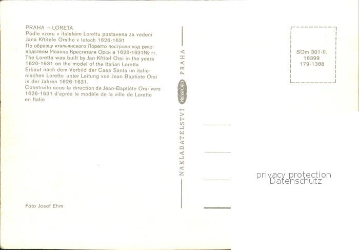 Praha Prahy Prague Loreta Vorbild der Casa Santa im ital Loretto postalisch nicht gelaufen Erhaltung siehe scans