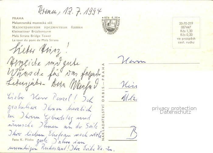 Praha Prahy Prague Malostranska mostecka vez Kleinseitner Brueckenturm postalisch nicht gelaufen Erhaltung siehe scans