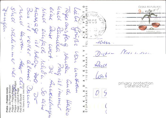 old postcard Praha Prahy Prague Moldaubruecken bei Nacht postalisch gelaufen Erhaltung siehe scans