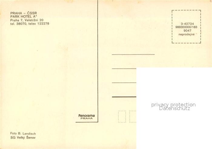 Praha Prahy Prague Park Hotel A postalisch nicht gelaufen Erhaltung siehe scans [LiesaD40]
