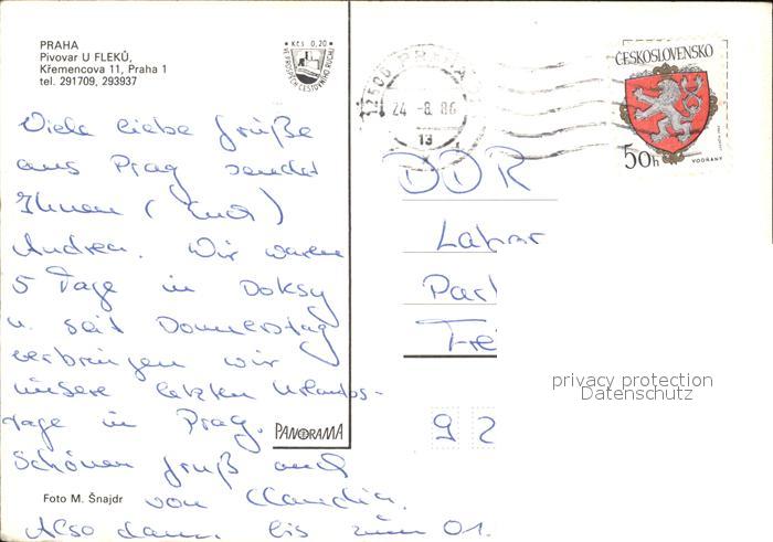 old postcard Praha Prahy Prague Pivoar u Flekue postalisch gelaufen Erhaltung siehe scans