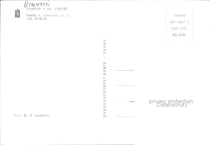 Praha Prahy Prague Pivovar Braurerei Tomase postalisch nicht gelaufen Erhaltung siehe scans [LiesaD40]