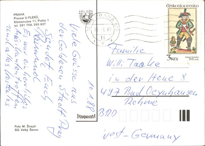 old postcard Praha Prahy Prague Pivovar Fletue postalisch gelaufen Erhaltung siehe scans