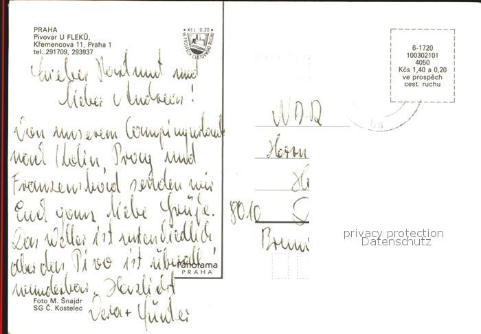 old postcard Praha Prahy Prague Pivovar u Fleku postalisch gelaufen Erhaltung siehe scans