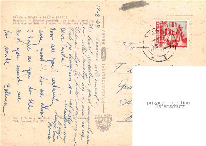 old postcard Praha Prahy Prague Prager Burg Wenzelsplatz Denkmal Siedlung Wohnblocks postalisch gelaufen Erhaltung siehe scans [FriedD77]