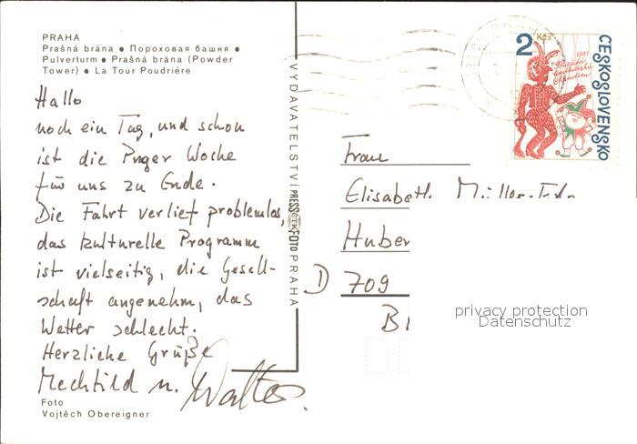 old postcard Praha Prahy Prague Pulverturm postalisch gelaufen Erhaltung siehe scans