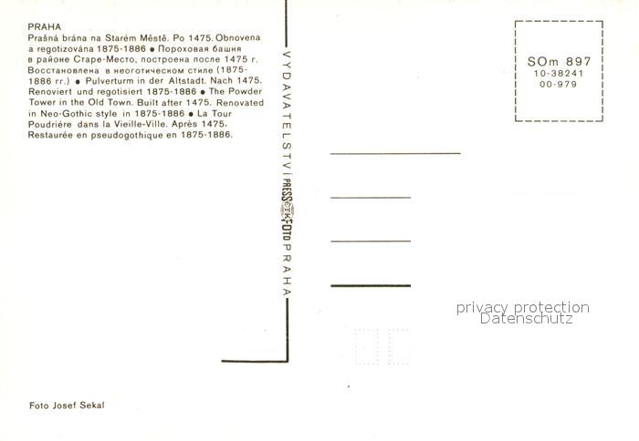 Praha Prahy Prague Pulverturm in der Altstadt postalisch nicht gelaufen Erhaltung siehe scans [FriedD77]