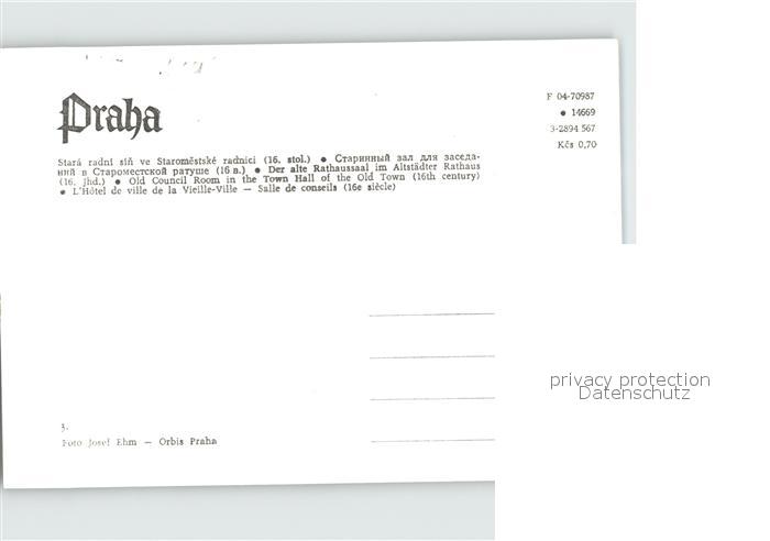 Praha Prahy Prague Rathaussaal postalisch nicht gelaufen Erhaltung siehe scans