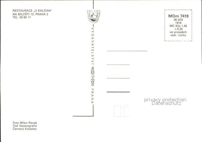 Praha Prahy Prague Restaurace U Kalicha postalisch nicht gelaufen Erhaltung siehe scans