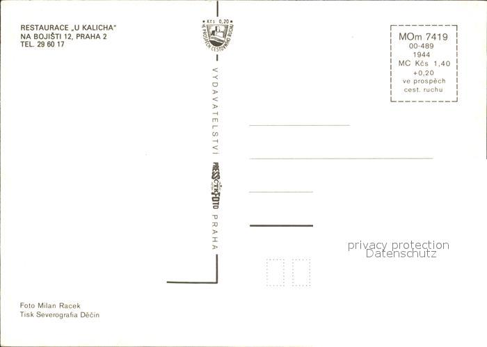 Praha Prahy Prague Restaurace U Kalicha Gastraeume postalisch nicht gelaufen Erhaltung siehe scans