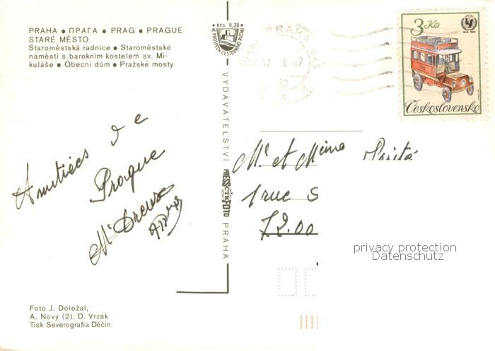 old postcard Praha Prahy Prague Staromestska radnice Namesti a baroknim kostelem Obecni dum Prazske mosty postalisch gelaufen Erhaltung siehe scans [WerneD78]