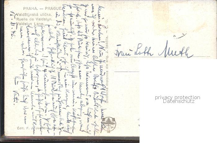 old postcard Praha Prahy Prague Strassenpartie Kuenstlerkarte postalisch gelaufen Erhaltung siehe scans