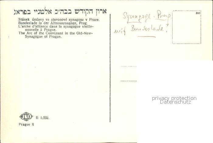 Praha Prahy Prague Synagoge mit Bundeslade postalisch nicht gelaufen Erhaltung siehe scans
