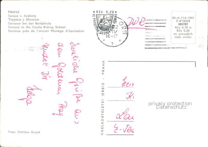 old postcard Praha Prahy Prague Terrasse bei der Reitschule mit Kirche postalisch gelaufen Erhaltung siehe scans