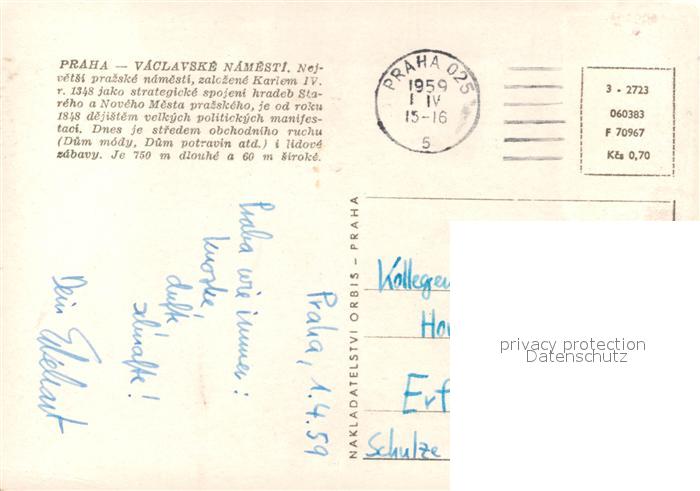 13597994 old postcard Praha Prahy Prague Vaclavske namesti postalisch gelaufen Erhaltung siehe scans [WerneD78] KatCode: 11520