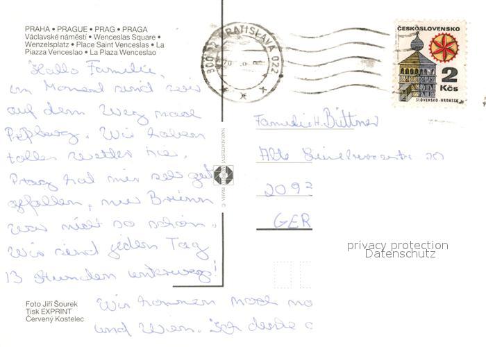 73277781 old postcard Praha Prahy Prague Vaclavske Namesti Wenzelsplatz postalisch gelaufen Erhaltung siehe scans [PaolaD17] KatCode: 11520