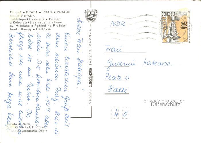 old postcard Praha Prahy Prague Valdstjnska zahrada Pohld z Kolovratske zahrady na chram sv Mikulase Prazsky hrad z Kampy Certovka postalisch gelaufen Erhaltung siehe scans