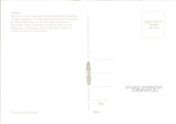 Praha Prahy Prague Waldstein Palast mit Garten postalisch nicht gelaufen Erhaltung siehe scans [LiesaD40 kt122box]