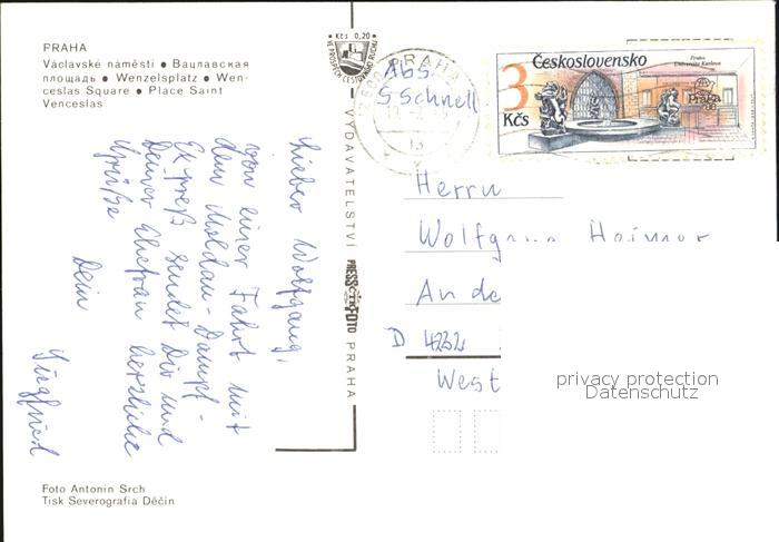 old postcard Praha Prahy Prague Wenzelsplatz postalisch gelaufen Erhaltung siehe scans