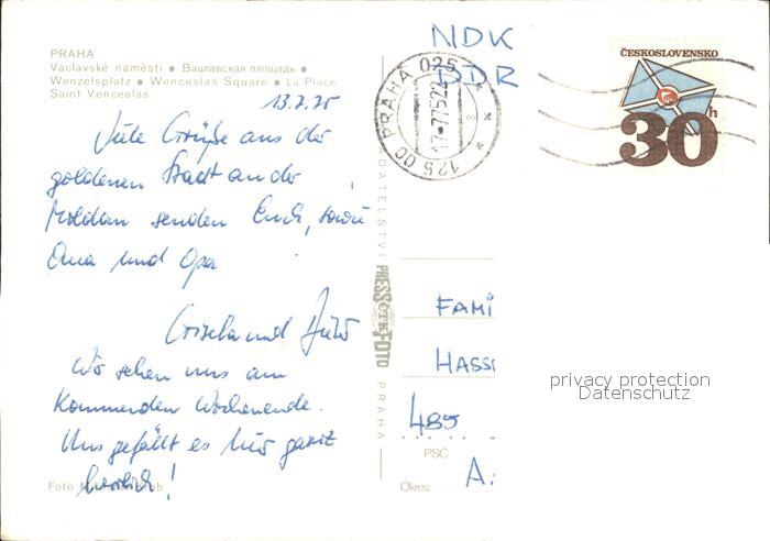 old postcard Praha Prahy Prague Wenzelsplatz am Abend postalisch gelaufen Erhaltung siehe scans