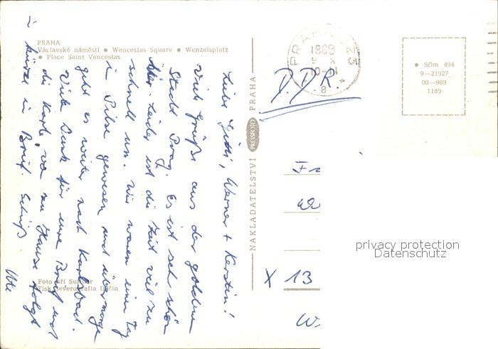 old postcard Praha Prahy Prague Wenzelsplatz am Abend postalisch gelaufen Erhaltung siehe scans