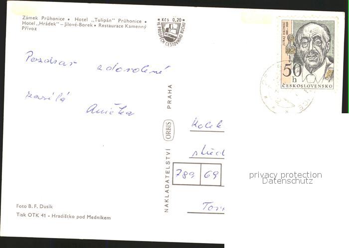 old postcard Praha Prahy Prague Zamek Pruhonice Hotel Tulipan Pruhonice Hotel Hradek postalisch gelaufen Erhaltung siehe scans