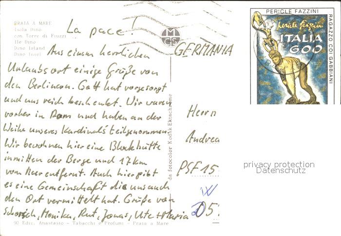 old postcard Praia a Mare Isola Dino Torre di Fiuzzi postalisch gelaufen Erhaltung siehe scans