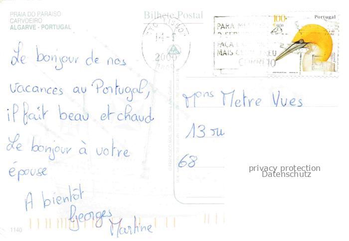 74015087 old postcard Praia do Paraiso Carvoeiro Algarve PT Panorama Kueste Strand postalisch gelaufen Erhaltung siehe scans [FriedD77] KatCode: 11420