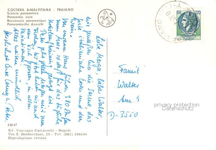 old postcard Praiano Scorcio panoramico Kuestenpanorama postalisch gelaufen Erhaltung siehe scans [FriedD77]
