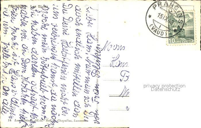 11736311 alte Postkarte Prangins Les Bluets postalisch gelaufen Erhaltung siehe scans KatCode: 11470240815648