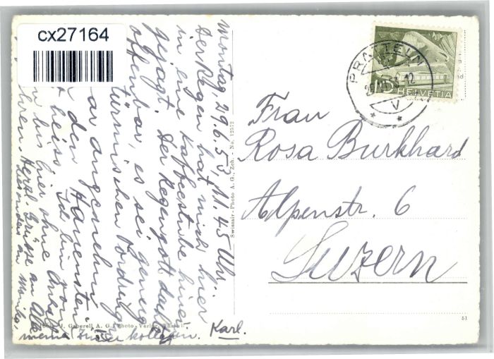 10849962 alte Postkarte Pratteln Fliegeraufnahme postalisch gelaufen KatCode: 11470040090686