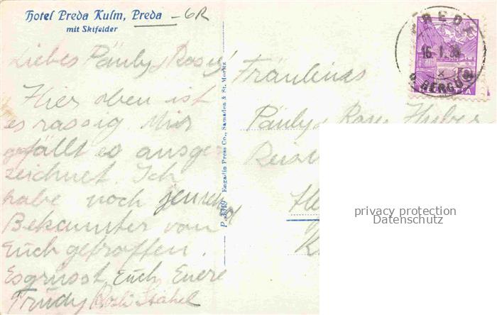 34142675 alte Postkarte Preda Albula GR Hotel Preda Kulm mit Skifelder postalisch gelaufen Erhaltung siehe scans [WerneD78] KatCode: 11470100305936