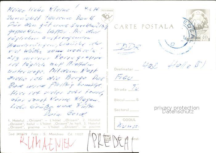old postcard Predeal Hotel Orizont postalisch gelaufen Erhaltung siehe scans