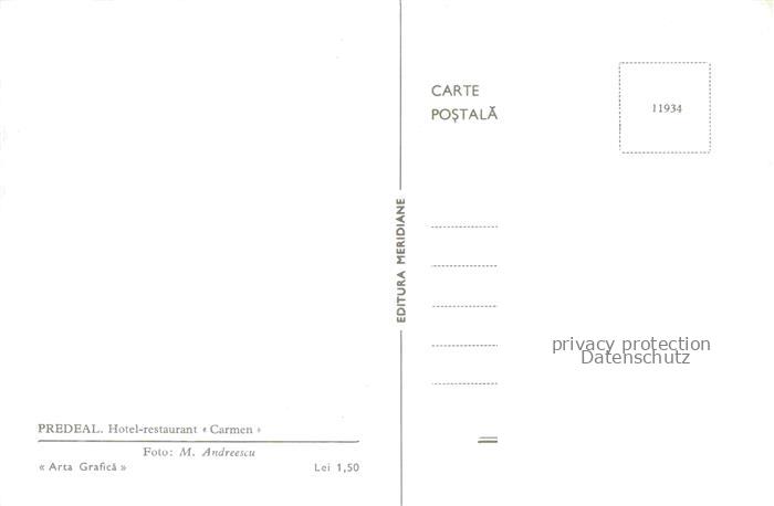 74088092 Predeal Romania Hotel Restaurant Carmen postalisch nicht gelaufen Erhaltung siehe scans [WerneD78] KatCode: 11430