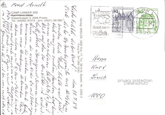 72039856 alte Postkarte Preetz Holstein Camp Lanker See Camping Holsteinische Schweiz Fliegeraufnahme postalisch gelaufen Erhaltung siehe scans KatCode: 11110001057062