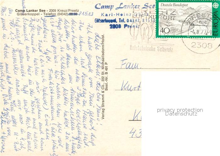 73067127 alte Postkarte Preetz Holstein Camp Lanker See postalisch gelaufen Erhaltung siehe scans [NatalD47] KatCode: 11110001057062