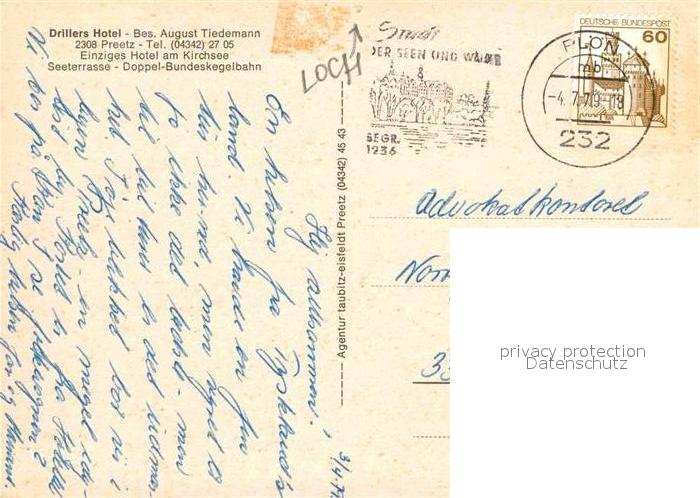 72826906 alte Postkarte Preetz Holstein Drillers Hotel postalisch gelaufen Erhaltung siehe scans [NatalD47] KatCode: 11110001057062