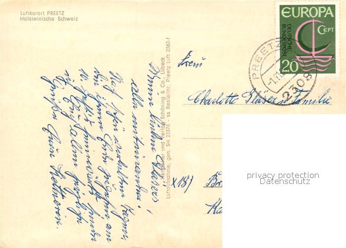 73104943 alte Postkarte Preetz Holstein Fliegeraufnahme postalisch gelaufen Erhaltung siehe scans [WerneD78] KatCode: 11110001057062