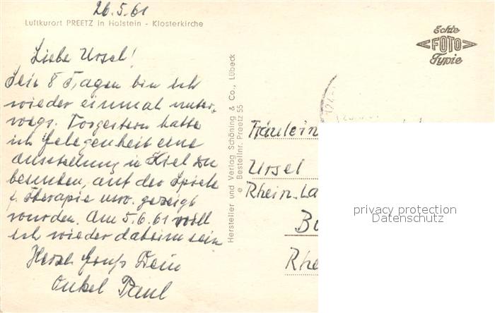 73283136 alte Postkarte Preetz Holstein Klosterkirche postalisch gelaufen Erhaltung siehe scans [NatalD47] KatCode: 11110001057062