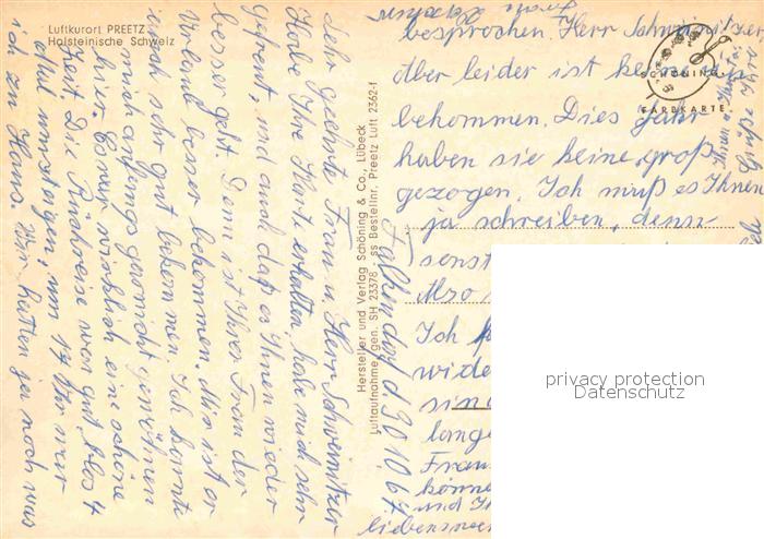 72780800 Preetz Holstein Luftkurort Holsteinische Schweiz postalisch nicht gelaufen Erhaltung siehe scans [FriedD77] KatCode: 11110001057062