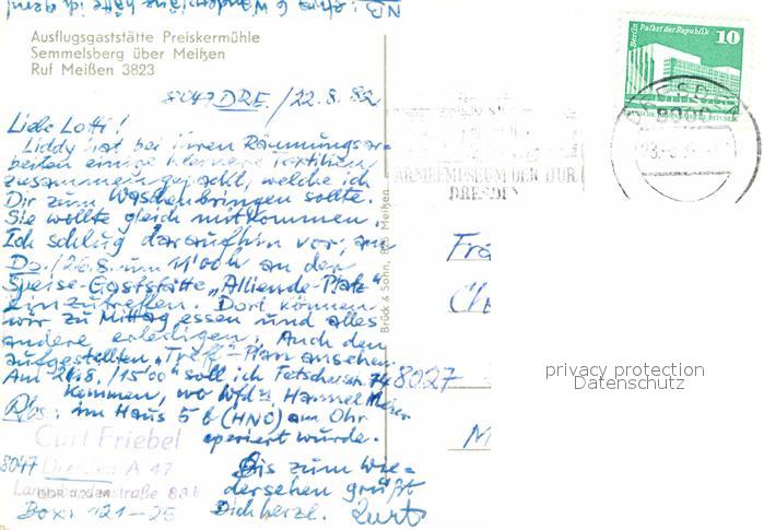 72638383 alte Postkarte Preiskermuehle Ausflugsgaststaette Semmelsber postalisch gelaufen Erhaltung siehe scans [KathaD79] KatCode: 11110014287270