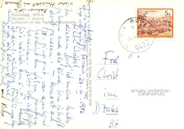 73312289 alte Postkarte Preitenegg Panorama Luftkurort an der Packer Hoehenstrasse Kirche Hotel Gasthof postalisch gelaufen Erhaltung siehe scans [FriedD77] KatCode: 11390213020911