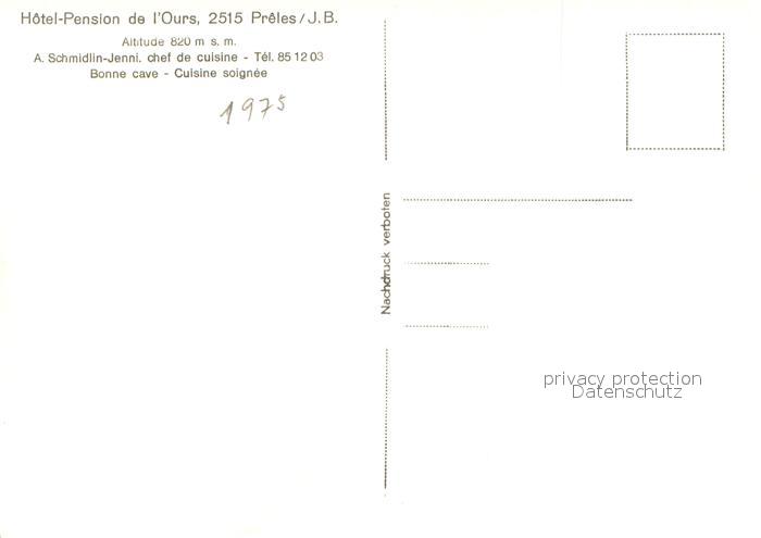 13658162 Preles Hotel Pension de l’Ours postalisch nicht gelaufen Erhaltung siehe scans [WerneD78] KatCode: 11470060185384