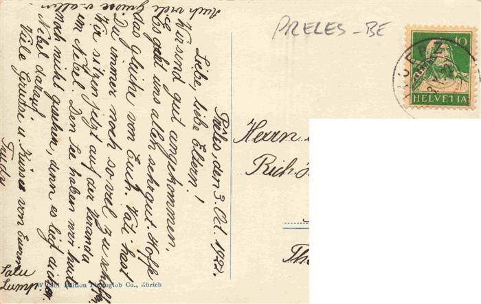 13960606 alte Postkarte Preles Praegelz BE Colonie de vacances de Bâle postalisch gelaufen Erhaltung siehe scans [FriedD77] KatCode: 11470060185384