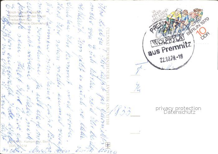 72324155 alte Postkarte Premnitz Erich Weinert Str Bootshafen Havel Freibad Wilh Pieck Oberschule postalisch gelaufen Erhaltung siehe scans KatCode: 11110012063244