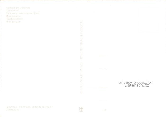 72374257 Prenzlau Freibad am Uckersee Neubauten Marienkirche Puschkinstrasse Mitteltorturm postalisch nicht gelaufen Erhaltung siehe scans KatCode: 11110012073452